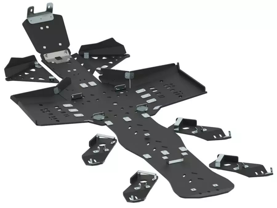 Iron Baltic bundskjoldssæt giver omfattende beskyttelse til CanAm G2 Outlander 6x6-modeller ved at beskytte bund, ramme og A-arme under krævende forhold. Dette lette og robuste sæt er fremstillet af 10 mm HDPE-plast og er designet til at bevare maksimal frihøjde og beskytte kritiske dele.